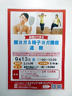 9月13日(日)11時〜12時まで遠軽町福祉センターにて顔ヨガ&椅子ヨガ講習会が開催されます。