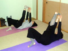 仰向けサギのポーズ(左)と四の字のポーズ(右)