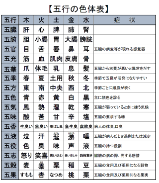 東洋医学では自然の現象を長い間の観察より5つの事象に分類し、物事を考えてきました。