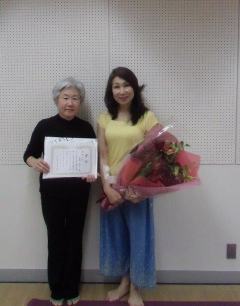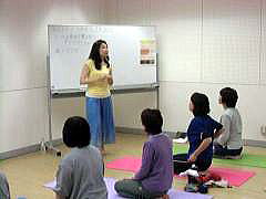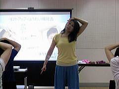 顔ヨガレッスン中 元谷先生自ら実践! 美ボディYOGAの講義中! 魚のポーズ変形!