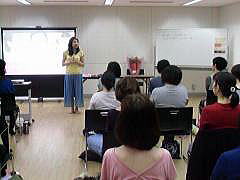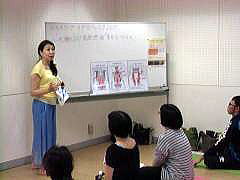 顔ヨレッスン講義中! みんなで一緒に顔ヨガ実践! インナーマッスル強化のお話 先生の見本に皆さんうっとり!