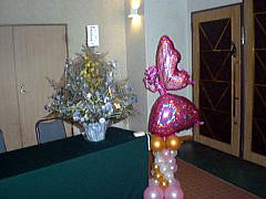 パーティー会場の舞台の飾りつけです。