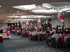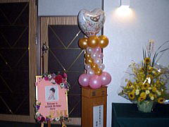 生徒さんからのお祝いのお花やバルーンアートで、受付や会場の中を可愛らしく飾りつけをさせていただきました。