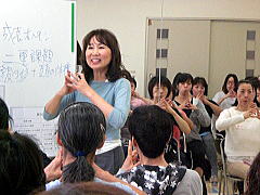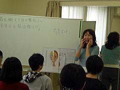 脳の老化とシワの出来る場所との関係などのお話に、皆さん真剣に鏡を見たり、となりの方に「見て見て」とチェックをしてもらったり興味津々でした
