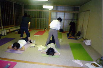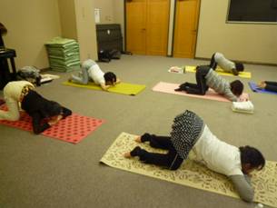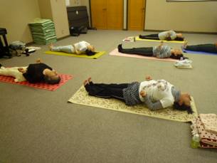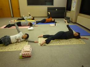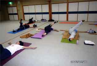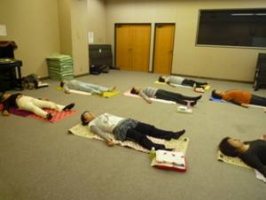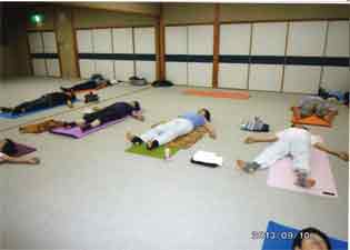 仰向けの休息のポーズ              滝上教室の皆さん