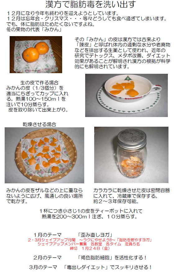 来月のテーマは『脂肪を燃やしてきれいになるYOGA』です