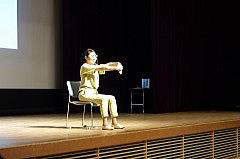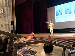 講演会では脳の活性化方法を伝授したり、椅子ヨガで体をほぐしていくポーズなどを行いました。