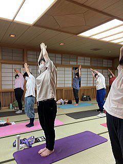 爽やかな青空の下、ヨガのレッスンで心も身体もリフレッシュしましょう!