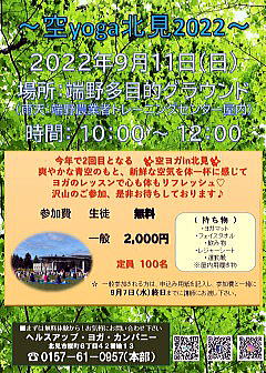 来月9月11日(日)端野多目的グラウンドで、「空ヨガ in 端野」を開催致します。