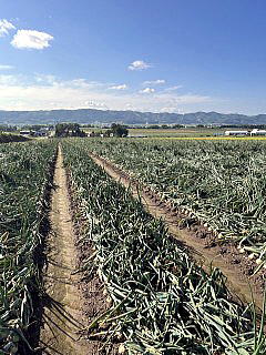 秋の空はとても広く、どこまでも続く広い玉ねぎ畑