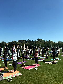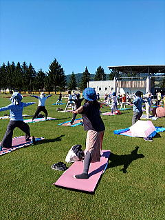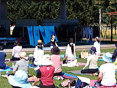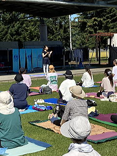 セルフストレッチから始まり、スペシャルレッスンでは、青空の暖かい日差しと気持ちの良い風を全身に感じながらヨガを行い、皆さんの汗がキラキラと眩しく光っていました!