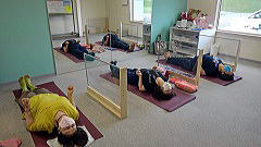 コロナウイルス感染予防のために、マットの間には手作りのアクリル板を置いてレッスンをしました。