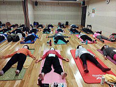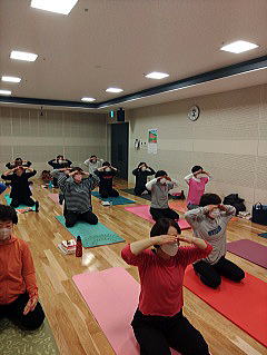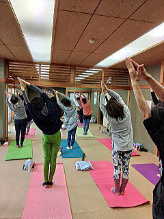 今月のレッスンでは、自律神経のバランスをとる呼吸法(ブラーマリー)や自分自身の機能を正常に保ち身体のバランスを整えることを目的とする「ハタヨガ」と精神を集中させ心のバランスを整えることを目的とする「ラジャヨガ」も取り入れて行っています。