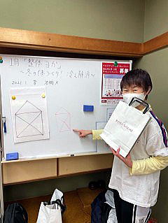 初レッスンでいきなり脳トレゲーム、頭が働かない~などなど声がありましたが、皆さん真剣に指でなぞり一筆書きを楽しんでいた?(笑)様子でした!
