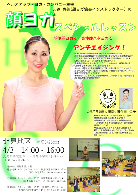 またそれに合わせて各地区で顔ヨガのスペシャルレッスンを行います。